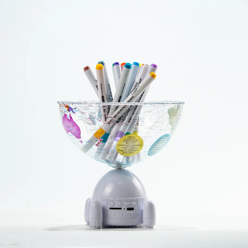 Wellfun HD Transparent Plastic Rotating Decor Education World Globe Model Acrylic Bluletooth Music Earth Globe Map